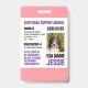 Uma paleta de cores rosa e roxa, além de fontes em letras maiúsculas sólidas, adicionam importância e facilidade de leitura a este crachá de identificação de animal de suporte emocional. Personalize com o nome do ASE, nome do tratador e endereço, além do número de registro e código UPC. O tipo de letra e as cores da fonte podem ser modificados conforme desejado.