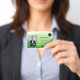 Personalize o crachá de identificação alterando o texto, foto, código de barras, número de identificação e o logotipo.