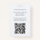 Simplifique a identificação e melhore a segurança com este crachá personalizado de identificação de fotos, com um espaço dedicado para um código QR digitalizável. Projetado com um fundo de cinza silencioso com uma moderna faixa azul-clara e um texto moderno de sans serif profissional, este crachá combina o estilo de negócios com a funcionalidade digital. Personalize o crachá com um funcionário ou foto do participante, nome e duas linhas de texto personalizado — perfeito para títulos de cargo, nomes de departamento ou informações de localização. Na parte traseira, um espaço reservado permite que você carregue seu próprio código QR — ideal para vincular a perfis de funcionários, check-ins seguros, cartões de visitas digitais ou contatos de emergência. O crachá também inclui espaço para o logotipo de sua empresa ou evento no topo, e um campo de texto personalizado opcional no verso para informações de retorno, protocolos de segurança ou outras notas importantes. Emparelhe-o com um pátio ou crachá para uma configuração profissional completa. Principais recursos Limpo, design minimalista com texto de sans preto em branco Carregue uma foto, um logotipo e um código QR digitalizável. Texto personalizável para nome, título, departamento ou número de ID Texto de fundo opcional para instruções adicionais ou informações de contato. Perfeito para escritórios modernos, conferências, escolas e instalações seguras