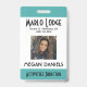 Personalize os crachás de identificação de seus funcionários. Todos os detalhes podem ser modificados ou removidos. Foto, nome, empresa, departamento/divisão/cargo. Texto preto nítido em fundo branco com bordas em azul-celeste no topo e na parte inferior. Cada detalhe pode ser personalizado, incluindo cores e fontes. Espaço para informações adicionais no verso do crachá, se necessário. Se não, pode ser excluído. CARTÃO DE VISITA COORDENADO DISPONÍVEL EM OFFICE->CARTÕES DE VISITA