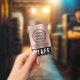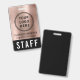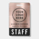 Crachá de identificação moderno e profissional para funcionários, equipe ou tripulação para o seu negócio, evento, conferência ou convenção, apresentando o logotipo da sua empresa ou organização em um fundo metálico rosa dourado falso escovado (substitua este fundo por sua própria imagem, se desejar). Adicione um nome e cargo ou o evento e data.