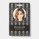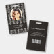 Padrão geométrico branco moderno art déco em fundo preto. Informações adicionais podem ser adicionadas no verso deste crachá de identificação empresarial