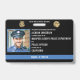 A crachá de identificação personalizável do departamento de polícia apresenta um emblema da polícia no topo que pode ser personalizado para o seu departamento, bem como um local para o logotipo do estado. Personalize com a foto do oficial à esquerda. Ao lado da foto, o nome do oficial, número da crachá, patente e departamento são exibidos. Adicione sua própria código de barras no verso do cartão, juntamente com as datas de emissão e expiração, e descrição do oficial, capitão, chefe ou funcionário do escritório.