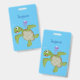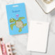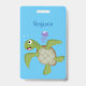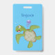Crachá Ilustração animada feliz da tartaruga verde-branca