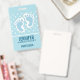 Crachá com uma imagem encantadora das pegadas do bebê azul com um contorno branco pesado. Bolinhas brancas sobre um fundo azul bebê atrás da ilustração.