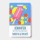 Crachá Ilustração Divertida de Picolé Rosa e Morangos