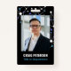 ID de funcionário vertical personalizada com foto, nome e departamento ou título com fundo preto e gráfico molecular em branco e azul. Um crachá de ID de funcionário para uma função científica. Crachá de identificação do funcionário com tema científico impresso com fotografia.