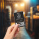 Um moderno crachá de negócios minimalista personalizado com logotipo de negócios, código QR e foto. Personalize com seu logotipo, código QR, foto e detalhes para criar seu próprio crachá de negócios elegante, preto e branco. Personalize ainda mais com um fundo ou fonte de cor personalizados.