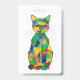 Um gato com um padrão semelhante a tartaruga com pelo arco-íris. Há espaço para um nome personalizado. O título de "Senhora Profissional de Gatos" também pode ser alterado.
