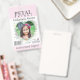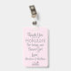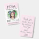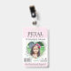 Personalize a insígnia de agente de patrulha de pétalas com nota de agradecimento e moldura em forma de coração com acentos florescentes para a foto da sua menina de flor.