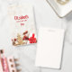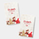 Crachá personalizado com uma fotografia rústica. Uma placa de madeira castanha clara com vários elementos de Natal ao longo da parte inferior.