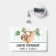 Nome crachá com uma preguiça adorável pendurada de cabeça para baixo de um galho de árvore. Ramo de árvore é decorado com folhas e bagas tropicais. Colocado sobre um fundo verde claro e listrado branco.