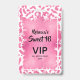 Uma elegante folha de falso cor-de-rosa sobrepõe um padrão de impressão do leopardo rosa e branco selvagens neste doce passe VIP de 16 convites de aniversário impresso num único crachá de plástico - com ou sem um pátio. CORRESPONDENTE a itens na nossa coleção.