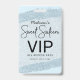 Seus hóspedes vão adorar receber esses convites de crachá de 16 VIP, suave e azul. Design apresenta um falso design de pincel brilhante com uma fonte moderna escrita à mão. Personalize facilmente esta modelo para a sua doce festa de aniversário de dezesseis. Os designs são ilustrações/gráficos impressos planos - NÃO O GLITTER REAL.