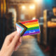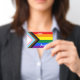 Crachá: Sinalizador Arco-Íris e a variação "Progresso" acrescenta um guião ao longo do assoalho que apresenta faixas pretas, castanhas, azuis-claro, rosa e brancas para trazer essas comunidades (pessoas marginalizadas de cor, indivíduos trans, e aqueles que vivem com HIV/AIDS e aqueles que foram perdidos) para a frente; "a seta aponta para a direita para mostrar movimento à frente, enquanto está na margem esquerda mostra que ainda é preciso fazer progressos.