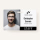 Crachá de ID do funcionário com um design minimalista limpo em preto e branco. Adicione uma foto do funcionário junto com o nome e a profissão. Personalize ainda mais com o logotipo da sua empresa.