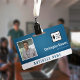 Crachá de funcionários do escritório com um design minimalista limpo em azul e branco. Adicione uma foto do funcionário junto com o nome e a profissão. Personalize ainda mais com o logotipo de sua empresa e o nome da empresa.