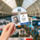 Crachá Limpe o ID de funcionário azul, adicione seu logot