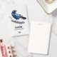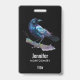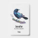 Um nome de etiqueta com uma adorável aquarela desenhada por um corvo. As cores azul escuro e roxo vibrante acentuam a beleza deste pássaro.