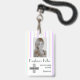 Um design simples e minimalista com listras pastéis e fundo branco colorido, foto, código de barras e modelo de logotipo. Personalize facilmente este crachá para a sua marca. - concebido com a rodovia Zaubershirts-