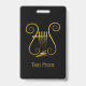 Lira dourada com quatro cordas. Texto personalizado em ambos os lados.