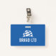 Um crachá para sua empresa ou evento, adicionando seu logotipo, nome comercial e quaisquer outros detalhes que você queira mostrar. A cor de fundo pode ser personalizada.