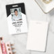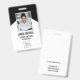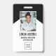 Crie um crachá de identificação personalizado de funcionário com uma foto profissional, o logotipo da sua empresa e três linhas de texto personalizado. Este moderno crachá vertical apresenta um fundo preto e branco limpo, combinando elegância e simplicidade - perfeito para empresas, escolas, saúde e ambientes corporativos. Exiba detalhes importantes como nome, cargo e departamento de forma clara e estilosa. Ideal para identificação de funcionários, segurança no local de trabalho e consistência da marca. Durável, profissional e projetado para uso diário.