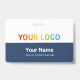 Personalize facilmente este Crachá de Funcionário Horizontal Personalizado com nome, profissão, cargo e logotipo empresarial alinhado. Um design empresarial simples em cores azul-marinho e branco totalmente personalizável, fontes básicas e modernas sem serifa e uma aparência profissional e clara. Disponível com cordão, clipe de metal ou retrátil. Qualquer cor, qualquer fonte. Sem pedido mínimo.
