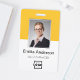 Personalize facilmente este crachá personalizado amarelo de nome e foto de funcionário com o logotipo da sua empresa e código qr ou código de barras. Disponível com diferentes cores de fundo e acessórios. Sem quantidade mínima de pedido.