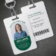 Faça uma declaração com este crachá de ID personalizável e profissional perfeito para a enfermeira prática licenciada. Este design moderno apresenta uma área clara de fotos, espaço para seu nome e título (Licensed Practical Nurse LPN), local e ID do funcionário. A parte traseira inclui um código de barras para fácil digitalização e informações de contato para recuperação de crachás perdidos ou emergências. Personalize-o com o nome e o logotipo do hospital ou do centro de saúde para uma aparência verdadeiramente exclusiva e profissional. Ideal para hospitais, clínicas, lares de enfermagem e outros serviços de saúde. Fácil de personalizar; basta carregar sua foto e adicionar seus detalhes.