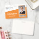 Personalize facilmente este crachá laranja de nome e foto de funcionário personalizado com o logotipo da sua empresa e código qr ou código de barras. Disponível com diferentes cores de fundo e acessórios. Sem quantidade mínima de pedido.