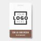 Personalize facilmente este crachá de nome de funcionário personalizado com seu próprio logotipo da empresa e código QR ou código de barras. Disponível com diferentes cores de fundo e acessórios. Sem quantidade mínima de pedido.