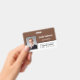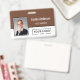 Personalize facilmente este crachá de nome e foto do funcionário com o seu próprio logotipo e código QR ou código de barras. Disponível com diferentes cores de fundo e acessórios. Sem quantidade mínima de pedido.