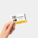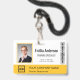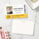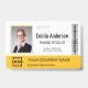Personalize facilmente este crachá personalizado amarelo de nome e foto do funcionário com o logotipo da sua empresa e código qr ou código de barras. Disponível com diferentes cores de fundo e acessórios. Sem quantidade mínima de pedido.