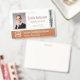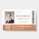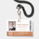 Personalize facilmente este crachá personalizado de nome e foto do funcionário em rose gold com o logotipo da sua empresa e código qr ou código de barras. Disponível com diferentes cores de fundo e acessórios. Sem quantidade mínima de pedido.