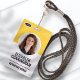 Um crachá moderno e simples que não se distrai dos detalhes importantes. É fácil ler de longe. Adicione um logotipo personalizado e detalhes da empresa. Adicione o nome do funcionário, a foto e o título profissional. O bar de cor pode ser modificado para corresponder às cores oficiais da empresa. No verso, adicione mais informações, como endereço de devolução e número de ID do funcionário. Perfeito para logotipos em forma oval.