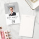 Personalize facilmente este crachá personalizado cinza de nome e foto do funcionário com o logotipo da sua empresa e código qr ou código de barras. Disponível com diferentes cores de fundo e acessórios. Sem quantidade mínima de pedido.