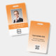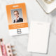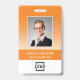 Personalize facilmente este crachá de nome e foto de funcionário personalizado laranja com o logotipo da sua empresa e código qr ou código de barras. Disponível com diferentes cores de fundo e acessórios. Sem quantidade mínima de pedido.
