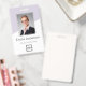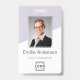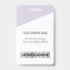 Melhore sua identidade profissional com nosso crachá de identificação personalizável e elegante, apresentando um refinado fundo bicolor em lavanda suave e branco. Este crachá inclui um espaço proeminente para uma foto personalizada, exibe claramente o nome e cargo, o logotipo da sua empresa e oferece espaço para informações adicionais com código de barras ou QR code no verso, garantindo uma aparência sofisticada e coesa. Ideal para ambientes corporativos, conferências e funções voltadas para o cliente, este crachá durável combina funcionalidade e estilo, tornando-o o acessório perfeito para qualquer ambiente profissional.