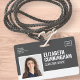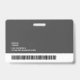 Um crachá moderno e simples que não distrai dos detalhes importantes. Fácil de ler à distância. Adicione um logotipo personalizado e detalhes da empresa/hospital/clínica. Adicione o nome do funcionário, foto e título profissional. A barra de cor pode ser modificada para corresponder às cores oficiais da empresa. No verso, adicione mais informações, como endereço de devolução e número de identificação do funcionário. Perfeito para logotipos em formato retangular.