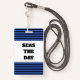 Mantenha-se a par de sua chave do stateroom da cabine do navio de cruzeiros com este amor para cruzar a correia chave do suporte do stateroom. Design preto moderno da listra com o texto "mares o dia". Monograma com sua própria mensagem. O fundo azul pode ser mudado a uma outra cor de sua escolha. Aperfeiçoe para os viajantes do cruzeiro que amam cruzar em suas férias com nossas sem suas famílias.