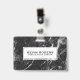 Elegantes tons preto e cinza modernos com textura de mármore falso e fundo com texto branco.