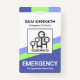 Uma coluna azul e verde inclinada com design acentua a parte inferior do crachá com uma faixa colorida semelhante na direção do topo. Seu nome prestigioso e seu título de trabalho estão no topo ao lado de um modelo de foto para carregar fotos até um tamanho de 1.000 x 1.000 pix. As cores ofuscantes atrás do modelo ajudarão fotos que têm fundo branco. Na base está um comentário de legenda "EMERGÊNCIA" que você pode alterar em conformidade. Próximo à base está o nome da sua empresa ou organização. No verso, num cobrir branco, a mesma faixa colorida cobrir as bordas superiores. Depois disto vem o logotipo; você pode substituí-lo por uma foto se desejar, o tamanho da foto é 1.000 x 1.000 pix. Seguem-se os comentários da legenda "Se perder o retorno para" (que você pode mudar), seu nome prestigiado, seus dados de contato e um slogan para divulgar seus serviços. Um design para todos usarem temas de saúde em especial.