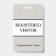Este design de crachá simples apresenta a mensagem "VISITANTE REGISTRADO" e um nome de empresa personalizável ou outra mensagem personalizada. Um crachá como este pode ser usado para indicar que uma pessoa é um convidado conhecido e autorizado em uma empresa ou local de trabalho. [~Z0000307]