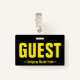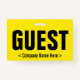 Este design básico do crachá apresenta a mensagem "CONVIDADO" e um nome personalizável da empresa ou outra mensagem personalizada. Um crachá como este poderia talvez ser usado para indicar que uma pessoa é um convidado ou visitante conhecido e autorizado numa empresa ou no local de trabalho. [~Z0000307]