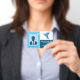 Crie seu próprio crachá de identificação com foto usando este design simples e versátil. Substitua a foto e o logotipo de amostra pelos seus para um design personalizado. A paleta de cores de amostra aqui é azul, mas você pode alterar as cores de todos os elementos do design para combinar com as cores da sua empresa ou organização. Você também pode alterar o estilo e as cores das fontes para combinar com o seu logotipo. Ótimo para todas as organizações e grupos.