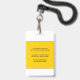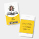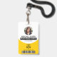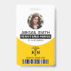 Crachá de modelo de foto de caduceu de enfermeira registrada amarela com código de barras. Ele apresenta seu nome, título e foto em fundo branco, enquanto o símbolo do caduceu e o código de barras estão em amarelo.
