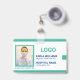 ID de enfermeiro ICU Cor branca e cor turquesa do modelo fotográfico. Se precisar de assistência para personalizar este modelo, sinta-se à vontade para enviar uma mensagem ao designer.