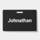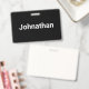 Este crachá de nome preto tem texto branco. Você pode editá-lo para mostrar um nome ou uma mensagem personalizada.