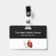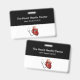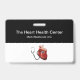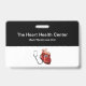 Modelo de placas de identificação médicas elegantes para um cardiologista em um centro de cuidados cardíacos, hospital ou sala de emergência. Criado com um design moderno simples de dois lados com espaço para o nome da sua empresa e equipe médica projetado com um símbolo de coração e estetoscópio. Apresentado com o clipe de fixação, mas também disponível com cordão. Um estilo econômico.